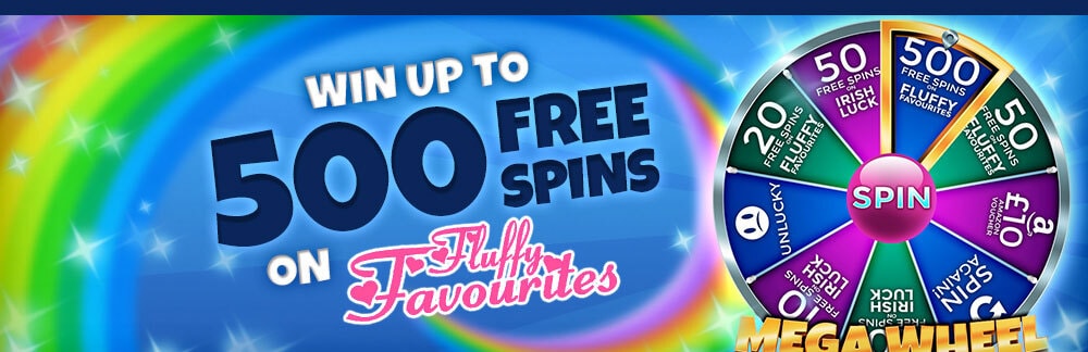 Make your first deposit today to claim our exclusive offer: spin your Mega Wheel for your chance to win some awesome prizes including the chance to win up to 500 Free Spins on Fluffy Favourites!